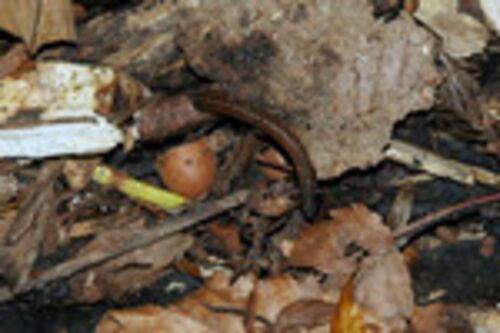 こども金山探検隊に参加していた志津川町のS木さん達総勢9人でO川の砂金採掘坑跡を見に行く。以前ここに来た時にヤツと出会ってしまったので気をつけていたのだが・・・・ 現場に着いて説明版を読んでいるとK藤さんから警報が!「ヤマビルが居る!」 いる…