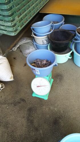 砂金掘り大会の準備開始。 ベテラン部門の砂作り・・・いや、今年からは完全に初心者部門とベテラン部門は統合されて一般部門になるのだった。だから作っている“砂”は一般部門決勝用の砂利・砂鉄混じりのもの。 とりあえず今日は砂利と砂鉄を計量。砂はまだ…