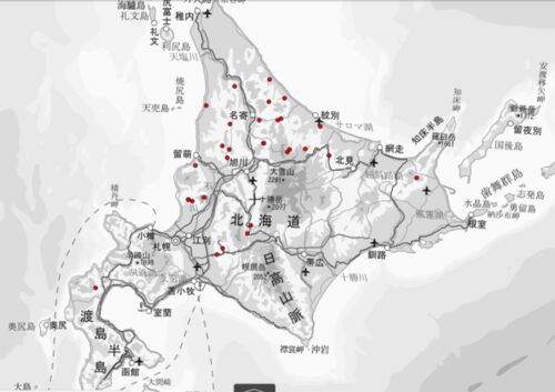 石狩市にも厚田川上流部に上砂金沢川、下砂金沢川があるとの指摘が・・・これで30ヶ所。 当別青山の砂金沢に近いのに今まで気がつかなかったなあ・・・ ↑ちゃんと修正してあるよ〜