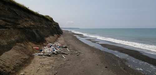 道北の浜を、新産地を探して彷徨う。 浜砂金産地の発見に見えている砂鉄層が必須とは考えていないが、とはいえあちこち歩いても盤はおろか砂鉄層が全く見えないのでは苦しい。 浜の長さ(波打ち際からの奥行き)が短い場所では常に砂が撹拌されて砂鉄層が形成…