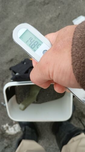 浜で砂鉄を運搬〜 さて、背負子に入れた砂鉄はどのくらい重いのか? ようやく重量計を試す時が来た! 背負子に寄せ場の砂鉄を7〜8分目まで入れて、何度か重量を量ってみた。 概ね15±1kgといったところ。 以前推定したのと同じくらいかな?(以前の推定は20kg…