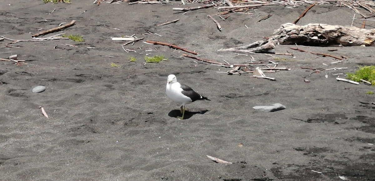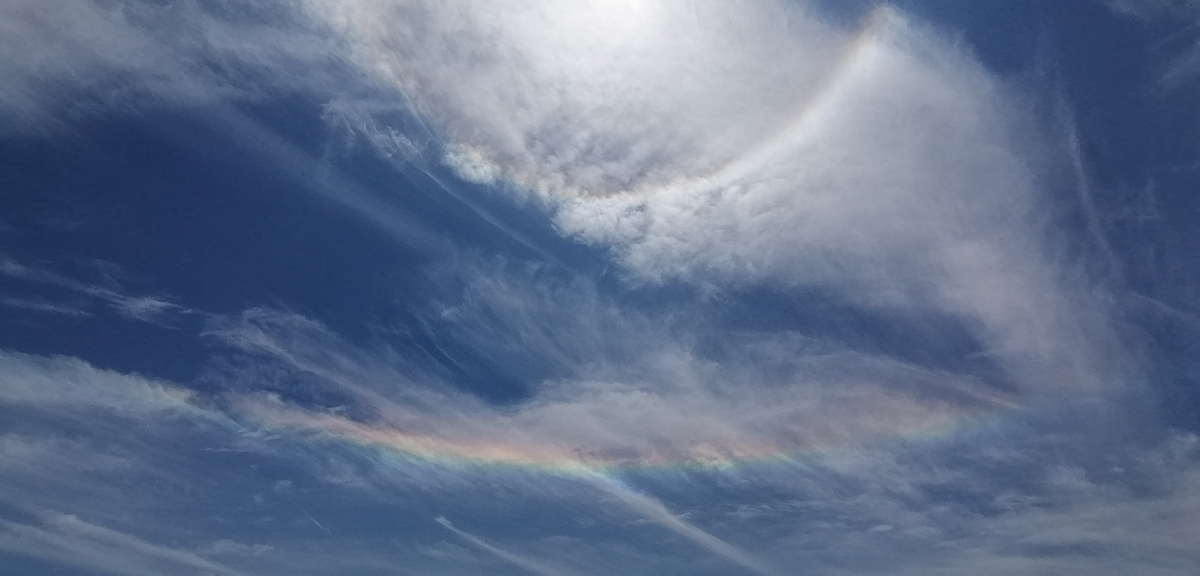 2023-07-05 ハロと環水平アーク 浜の砂鉄と対話してみたり。 カモメと対話してみたり。 おー! ハロと環水平アークだ。こんなにはっきりとしたのを見るのは初めてだ。 もっと広角のレンズがあればな~